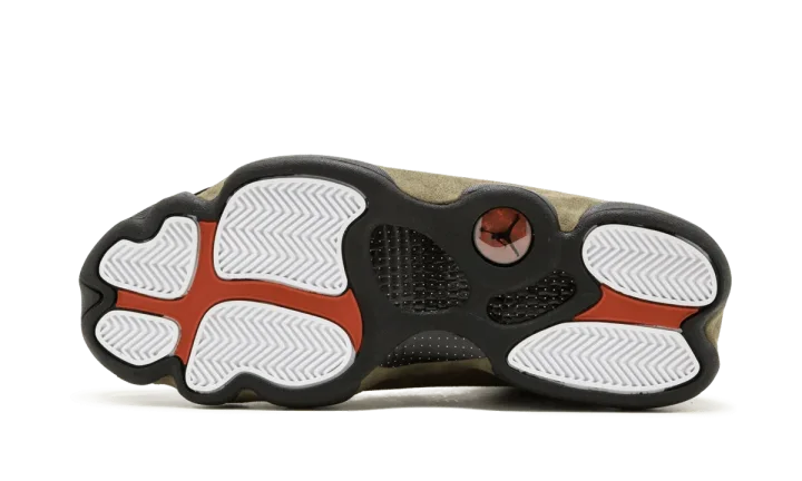 The practice of one Air Jordan retro model borrowing an iconic colorway from another continued with the release of this Air Jordan 13 "Olive". If you know Air Jordan history, you know the color scheme was originally found on the Air Jordan 9, as an OG colorway all the way back in 1994. Who knew it would also look so good on the Air Jordan 13 all these years later? Featuring a premium suede construction with touches of red for the branding and outsole detailing, no Air Jordan fan will want to miss the Jordan 13 Olive.