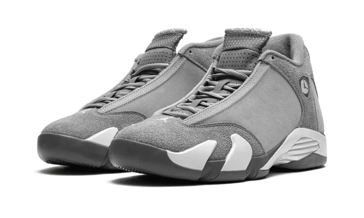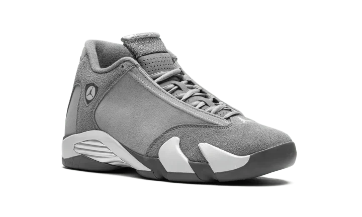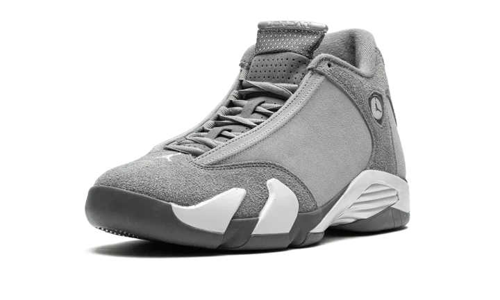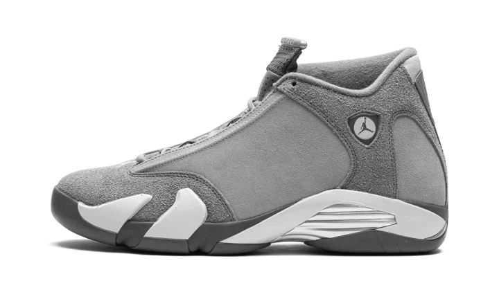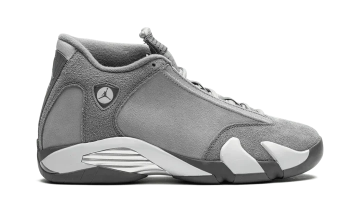The Air Jordan 14 "Flint Grey" is a clean and neutral colorway of Michael Jordan's fourteenth signature shoe that was released in Spring 2024. The Jordan 14 was famously worn by Jordan during his final game with the Chicago Bulls way back in 1998. In the years since Jordan's retirement, the retro basketball shoe has been released in numerous lifestyle colorways, including the "Flint Grey." The shoe has a Flint Grey suede construction with contrasting white accents on the heel, midsole, and the Ferrari-inspired Jumpman emblem on the lateral side of the collar. Classic "Jordan" branding is seen on the heel and on the tongue. A metallic silver midfoot shank plate and white rubber sole complete the look. Release date: March 20, 2024