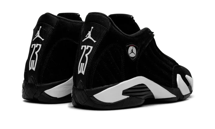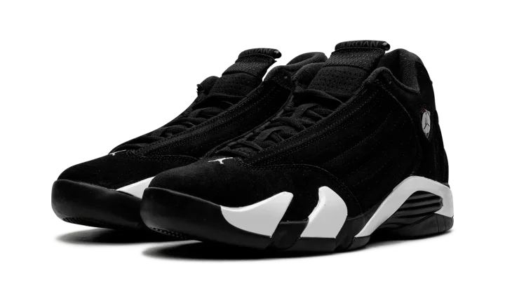 The Air Jordan 14 "Black/White" is a two-tone, "Panda"-esque colorway of the fourteenth Air Jordan shoe. The Jordan 14 was the final shoe worn by Michael Jordan with the Chicago Bulls, and is said to be inspired by luxury cars, particularly the Ferrari 55M, as its sleek silhouette and Ferrari-inspired logo on the collar are both a nod to the supercar. The upper features a black suede construction with white accenting on the aforementioned Jumpman badge on the collar. More white accenting can be found on the Jumpman and "23" logos on the heel and along the black midsole. Encapsulated Zoom Air cushioning units in the forefoot and heel provide comfort on or off the court. Release date: December 20, 2023