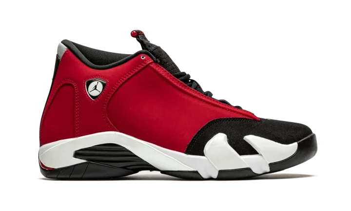 The Air Jordan 14 "Gym Red" is an unmistakable ode to the team uniform colors of the Chicago Bulls and Michael Jordan's love of Ferrari supercars. This Summer 2020 release of Jordan's fourteenth signature performance basketball shoe employs a familiar red, black, and white color scheme that was made famous by Jordan and his teammates throughout the 1990s. Blazing red nubuck appears on the upper, save for the contrasting black nubuck toe and mesh tongue. The aforementioned sports car inspiration comes into play as a tiny Jumpman emblem resembling a Ferrari logo dots the collar and black rubber bumper with white Jumpman and "23" branding graces the heel. The asymmetrical collar and spoiler-like design of the higher cut tongue combine to enhance the sporty nature of the shoe. Release date: July 2, 2020.