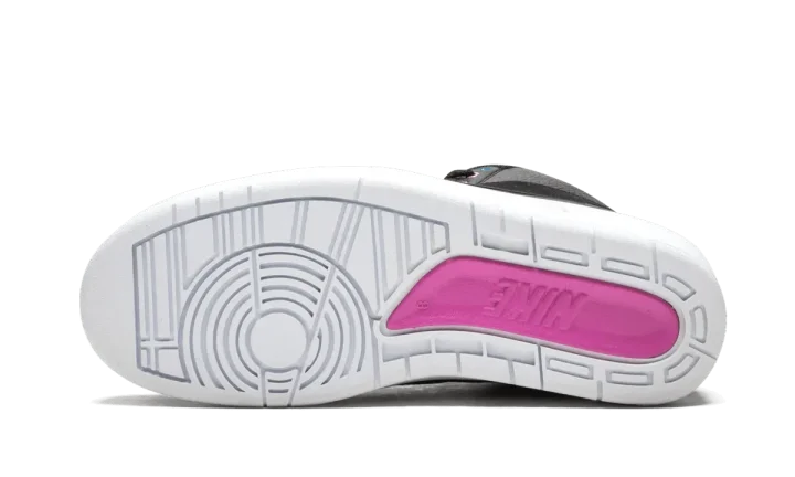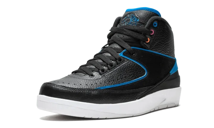 The Air Jordan 2 receives this colorway inspired the character Radio Raheem from Spike Lee's landmark film Do the Right Thing. The iconic silhouette features a black leather upper with blue, pink, and orange accents inspired by the "Bed-Stuy Do or Die" graphic on the t-shirt he wears throughout the movie.