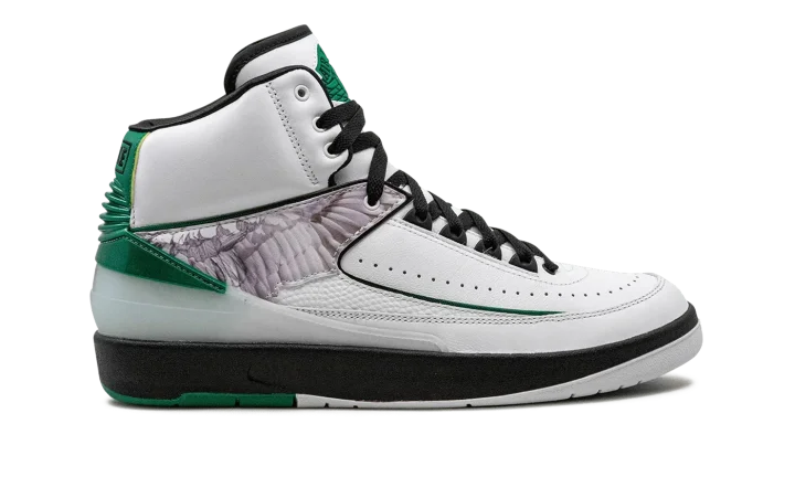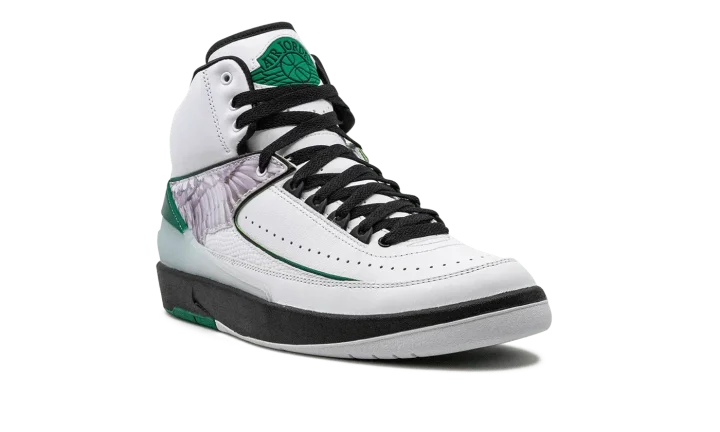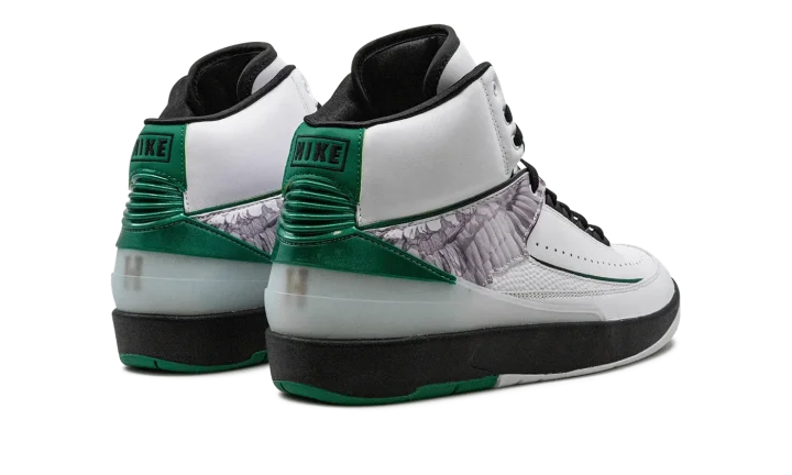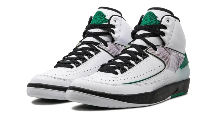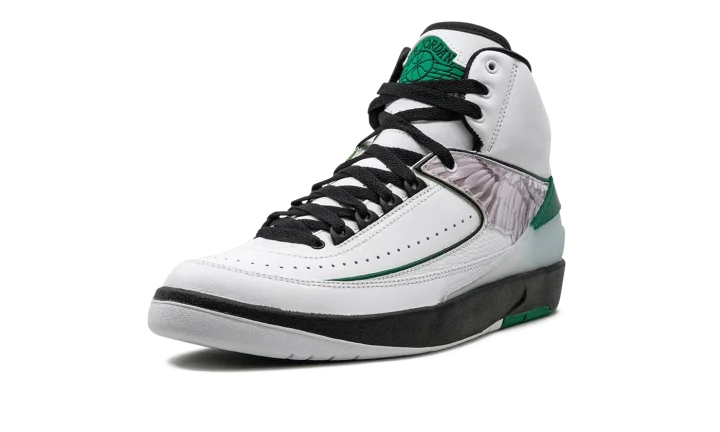 The Air Jordan 2 "Wings" is a special colorway of the second Air Jordan dedicated to Jordan's Wings Scholarship Program. The Jordan Wings Program helps students realize their potential without the stress of college payments or loans. This version of the Jordan 2 celebrates the graduating class of Jordan Wings Program in 2023. The upper is constructed of white leather with special side panels that resemble wings. Green accenting along the panels, on the heel, and on the "Wings" logo contrast the shoe's white leather base. Release date: June 10, 2023