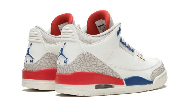 In 2018 Jordan Brand presented the "International Flight" pack, featuring three retro models inspired by exhibition and charity games Michael Jordan played during his career. This Air Jordan 3 "International Flight" was a tribute to Magic Johnson's Midsummer Nights game in 1988, where Jordan stole the show with 54 points. He wore Air Jordan 3 "Fire Red" sneakers and a blue and white uniform during the game, and all of those colors are referenced in the sneaker.