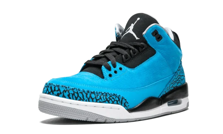 Released in 2014, the Air Jordan 3 Retro "Powder Blue" calls back to Michael Jordan's days at North Carolina with its baby blue colorway, a first for the Air Jordan 3. The construction features a soft brushed leather upper with black accents and the signature elephant print.