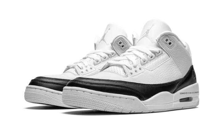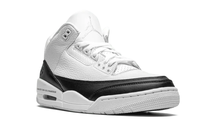 The Fragment Design x Air Jordan 3 is a collaboration between Hiroshi Fujiwara's design studio and Jordan Brand on Michael Jordan's third signature shoe. Rumored to originally be part of Fujiwara's scrapped "The 10" collection, this collaborative Jordan 3 sports a simple color scheme of black and white, though it's full of intricate details that make this one of the most appealing Jordan 3 colorways on the market. Starting with the upper, white tumbled leather appears on either side of the shoe. Smooth white leather can be found in a dotted design on both the collar and eyelets. Interestingly, Fragment removes the Jordan 3's beloved elephant print mudguard in favor of moody smooth black leather. An embossed Fragment Design logo is located on the glossy black heel panel. Moreover, a tonal embroidered Jumpman is stitched onto the white leather tongue, and Fragment's Double Bolt logo appears beneath the translucent heel overlay, which displays a traditional Jumpman emblem and black "Air" detailing. Release date: September 17, 2020.