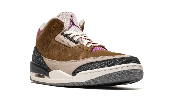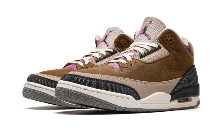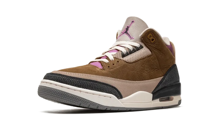 The Air Jordan 3 Winterized "Archaeo Brown" is a rugged version of the retro basketball shoe made for the winter. The Jordan 3 Winterized, as its name suggests, updates Michael Jordan's third signature shoe with details meant to withstand harsh weather conditions. In "Archaeo Brown," the colorway features a neutral, earth tone appearance. A water-resistant brown nubuck material is found on the upper. Pink suede mudguard and purple ballistic mesh on the collar contrast the brown base. The Jordan 3's original and beloved elephant print detailing is replaced with dark grey nubuck panels with white contrast stitching on the heel and toe. Classic Jumpman branding is found on the heel and tongue. A visible Air cushioning unit in the heel of cream-colored foam midsole completes the look. Release date: October 8, 2022