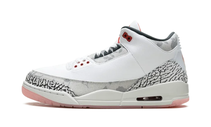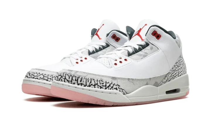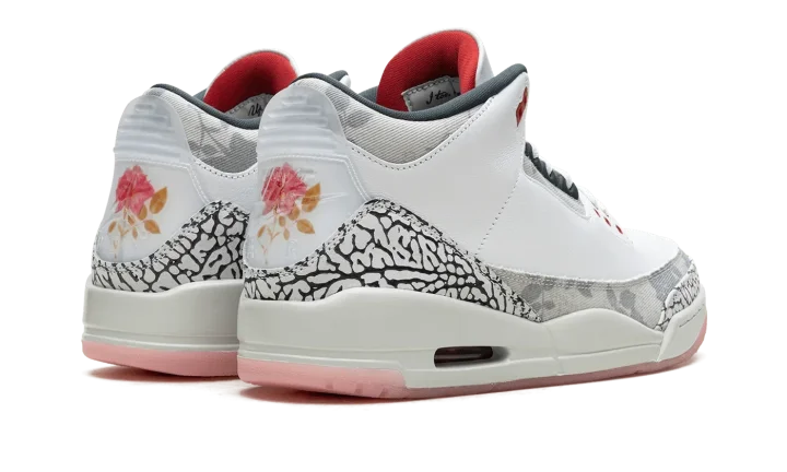 Uplift your collection with the highly sought-after Air Jordan 3 Retro "Wings." This limited-edition release is part of the Jordan Brand Wings Scholarship Program, with proceeds supporting youth education. It features a clean White leather upper accented by Off-White elephant print, elevated with a unique rose-adorned denim twill on the mudguard. Pops of Fire Red and Vintage Green are scattered throughout, blending luxury finishes with a deeply meaningful cause.