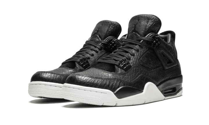 The Air Jordan 4 receives its most premium iteration ever with this 'Pinnacle' release featuring a reptile-embossed black leather upper with pony hair detailing. The stylish all black upper is contrasted with a solid white outsole, while quilted leather insoles add the final high-class touch.