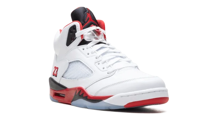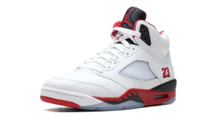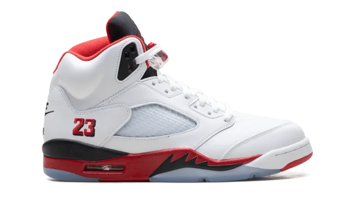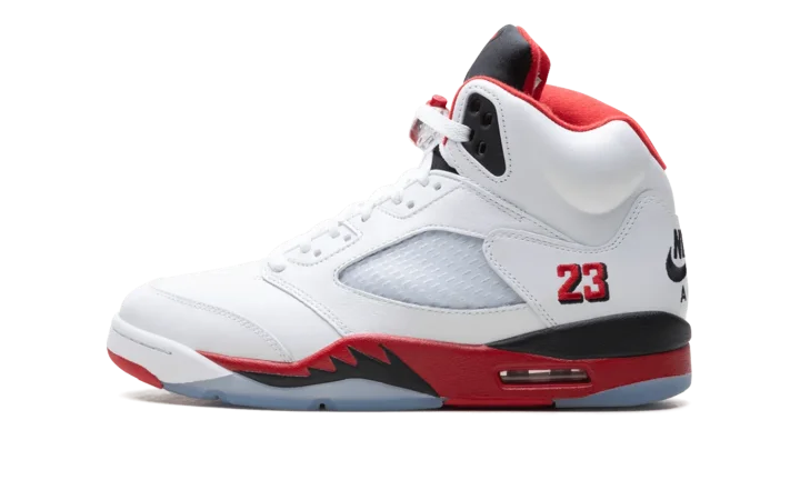 For a sneaker that truly stands out, check out the Air Jordan 5 "Fire Red / Black Tongue." This memorable design showcases its signature details in a clean white and rich red palette, with the legendary black tongue as a focal point. It delivers a supportive fit and a dynamic aesthetic, making it a valuable addition for any collector.