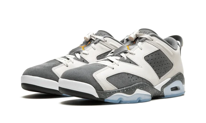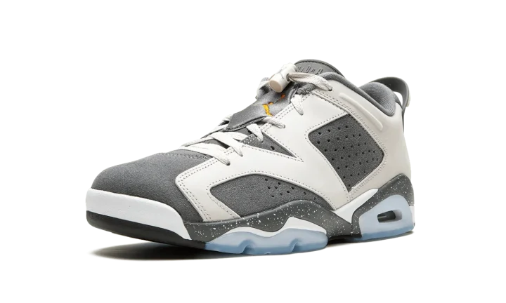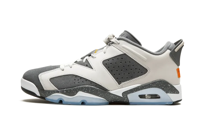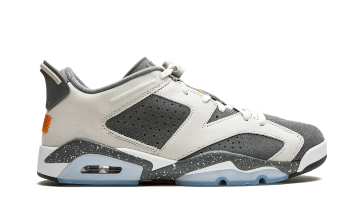 The PSG x Air Jordan 6 Low is a collaboration between Paris-Saint Germain and Jordan Brand on a colorway of Michael Jordan's sixth signature shoe in the alternate low-top model. Paris-Saint Germain, or simply PSG for short, continues its partnership with Jordan on a colorway of the retro basketball shoe that celebrates the soccer team's legacy. The upper is complete with a Cool Grey suede construction with contrasting white leather overlays. A Magma Orange Jumpman can be found on the tongue. "Air Jordan" branding appears on the tongue while a stitched patch on the heel honors the soccer club. Release date: September 20, 2023