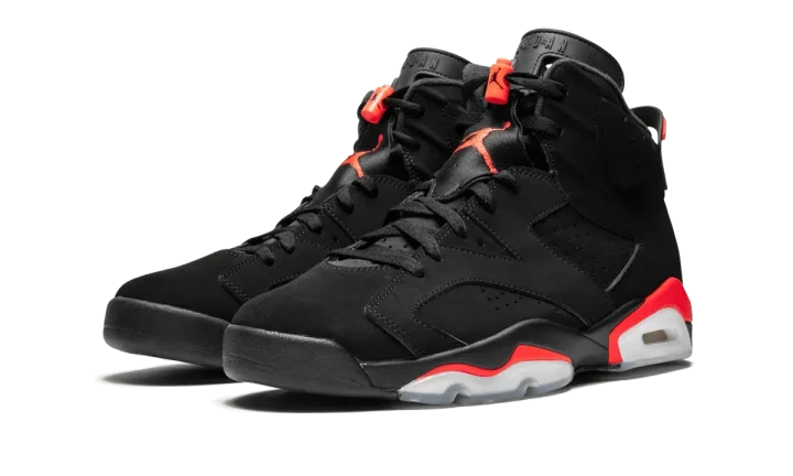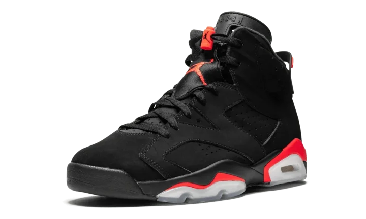 The Air Jordan 6 Retro "Black/Infrared 2019" is the 2019 release of this iconic Michael Jordan signature shoe. One of the most beloved Air Jordan models and colorways of all time, the Air Jordan 6 "Black/Infrared" features a black nubuck upper with bright neon red accents and icy clear portions of the outsole. This 2019 retro brings back the original Nike Air branding embroidered on the heel (previous retros of the Jordan 6 had a Jumpman logo on the heel). The 2019 "remastered" retro also features a shade of Infrared that is more accurate to the original 1991 release. This 2019 Air Jordan 6 "Black/Infrared" released during NBA All-Star weekend on February 16 and instantly became one of the biggest sneakers of the entire year.