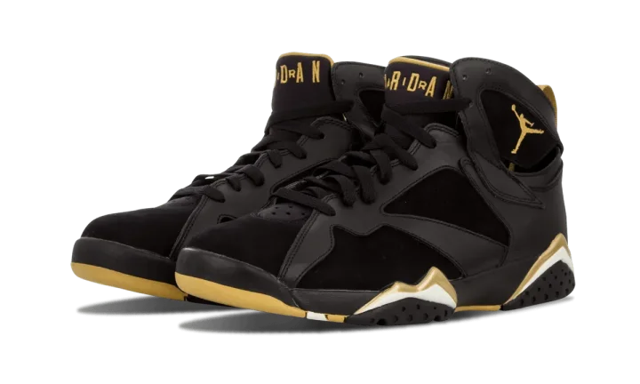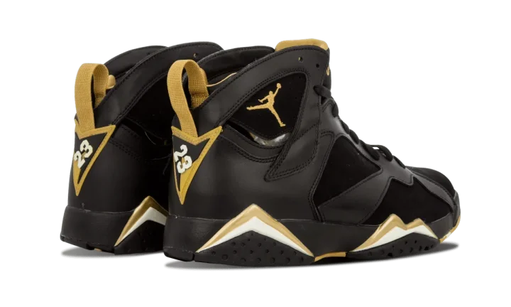 Half of the Air Jordan "Golden Moments" pack celebrating Michael Jordan's gold medal at the 1992 Summer Olympics, this black pair of the Air Jordan 7 features a premium leather and nubuck upper with gold detailing throughout. It's now regarded as one of the best Air Jordan 7 colorways ever.
