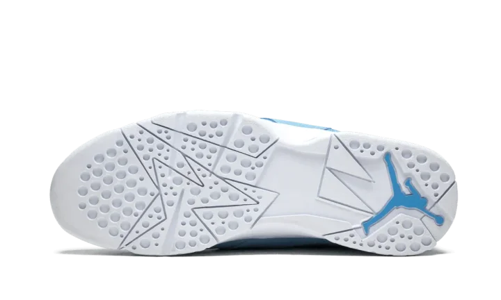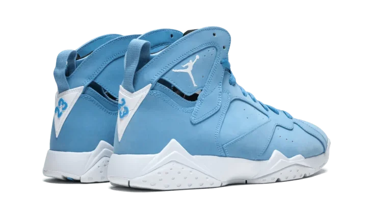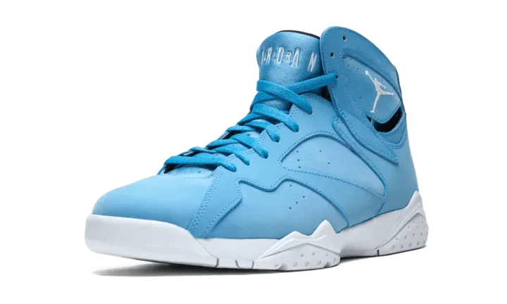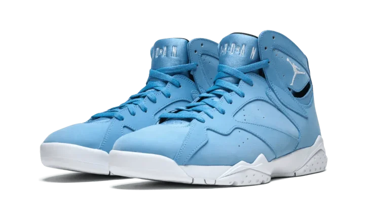 The Air Jordan 7 "Pantone" is an April 2017 release by Jordan Brand that honor's Michael Jordan's college alma mater, the University of North Carolina. The "Pantone" first made headlines when it appeared as a sample shoe in 2010's World Basketball Festival. Later, based on the shoe's popularity in the sneaker community, Jordan Brand decided to give the "UNC" inspired colorway a proper retail release. The Jordan 7 "Pantone" was released alongside other Jordan models in Tar Heels colors that spring, including the Jordan 11 Low "University Blue." Here, the upper is dressed in a full monochromatic University Blue synthetic nubuck material for an attention-grabbing look. An embroidered Jumpman logo appears on the collar and light blue "23" insignia can be found on the back of the shoe. The "Pantone" retains the Jordan 7's original "Air Jordan" typography on the nylon tongue as part of Jordan Brand's "Remastered" series that recreated original Air Jordan styles in modern materials. Underfoot, a white midsole with original Jordan 7 design elements completes the look. Release date: April 29, 2017.
