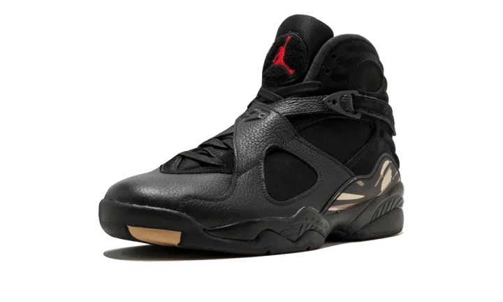 After what seemed like years of looks at samples and pairs only on Drake's feet, the OVO x Air Jordan 8 finally dropped in early 2018 in white and black leather colorways accented with metallic gold. Available here is the black edition, featuring a tough yet elegant look for the Air Jordan 8 in full-grain leather and suede with gold and red accents while the October's Very Own owl logo is found on each heel tab and insole. Of course, the black Air Jordan 8 OVO disappeared instantly at retail, so pick them up here at Stadium Goods before they disappear for good.