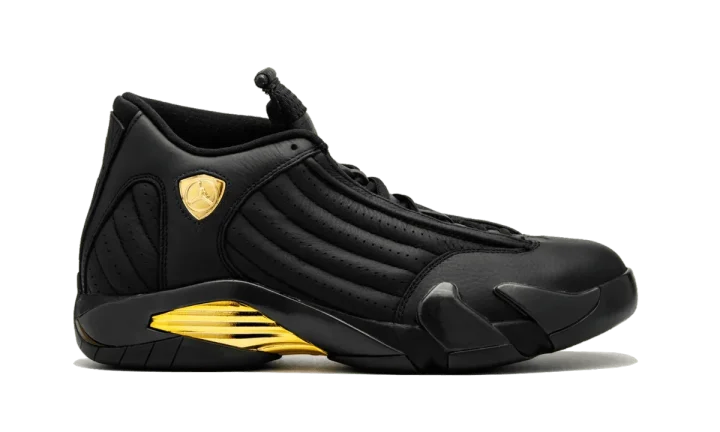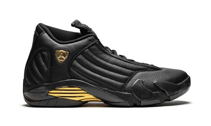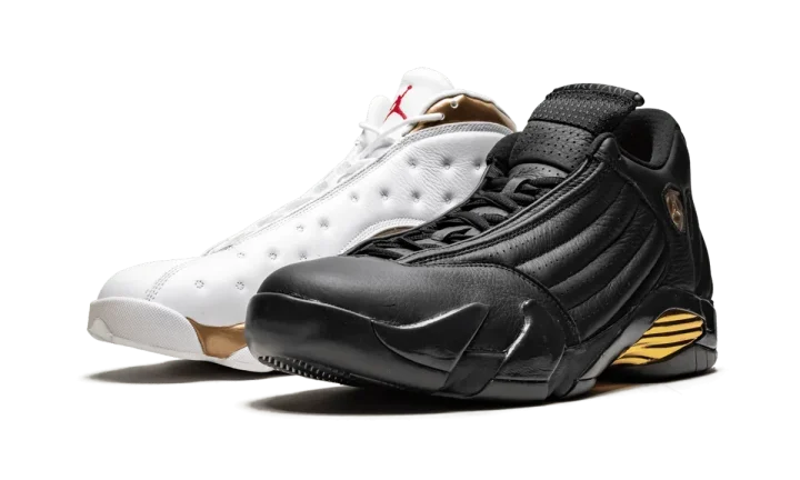 Defining moments are what separate Michael Jordan's career from many of his contemporaries. Jordan Brand encapsulates his final NBA championship run in 1998 by reintroducing the Air Jordan DMP Pack. But this release is comprised of an Air Jordan 13 and Air Jordan 14, which His Airness wore during his epic six game face off with the Utah Jazz. Jordan rocked the AJ 13 for the first four and a half games before debuting the AJ 14 in the second half of Game 5 and wearing them again for all of Game 6. The Air Jordan 13/14 DMP Pack sees the models dressed in white and black, respectively. Both shoes feature Metallic Gold details and uplifting messaging under the left and right tongue: "They Can't Win" and "Until We Quit."