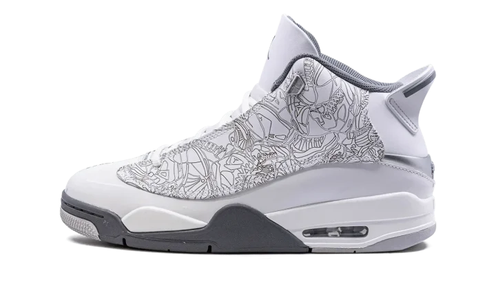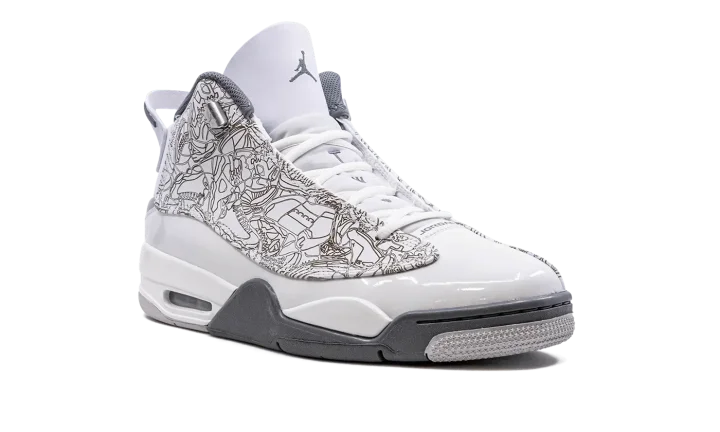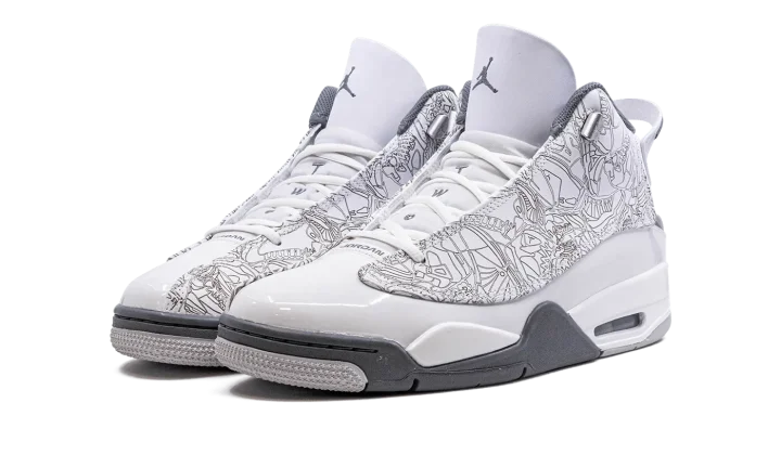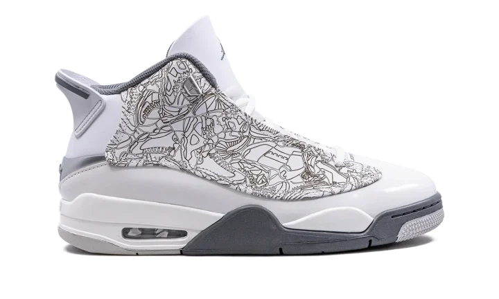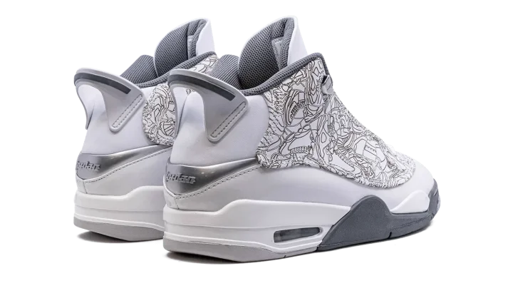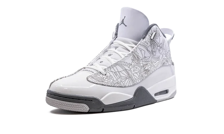 The Jordan Dub Zero "White/Cool Grey" is a neutral-based, versatile colorway of the shoe that features elements of multiple classic Air Jordan models. The Jordan Dub Zero features design cues from a long list of legendary Jordans, including the Air Jordan 4, Air Jordan 6, Air Jordan 11, Air Jordan 12, Air Jordan 13, Air Jordan 15, Air Jordan 17, and Air Jordan 20. The shoe has a white leather upper with laser print on the side panels. A white patent leather mudguard gives the shoe a sleek look. Cool Grey accenting lands on the Jordan 6-inspired rear spoiler, on the Jordan 4-inspired outsole, and on the Jumpman and "Two 3" branding on the tongue. Release date: January 17, 2023