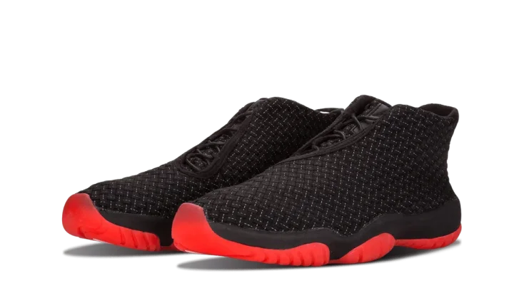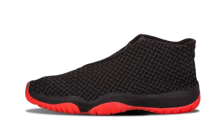 This premium woven edition of the Jordan Future features a black textile upper with reflective accents and a bright Infrared outsole.