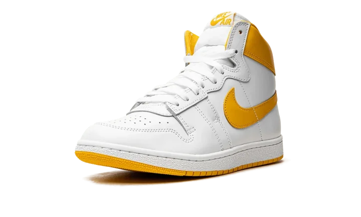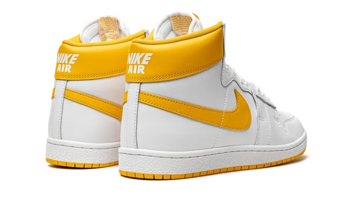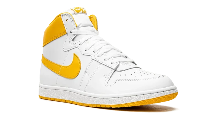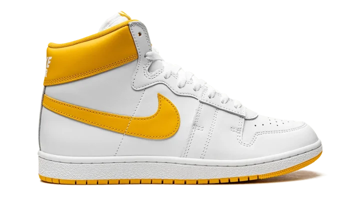 The Nike Air Ship "University Gold" is a new-for-2023 colorway of the retro basketball shoe that was notably worn by Michael Jordan during his rookie season with the Chicago Bulls. The Air Ship was originally released by Nike in 1984 and was worn by Jordan before switching to the Air Jordan 1. In the "University Gold" colorway, the shoe features a clean appearance with a white leather construction and University Gold accents. Specifically, yellow leather is found around the collar, on the leather Swoosh logo on the sides, and on the "Nike Air" and Swoosh branding on the tongue tag. Underfoot, a white midsole and University Gold rubber outsole complete the look.