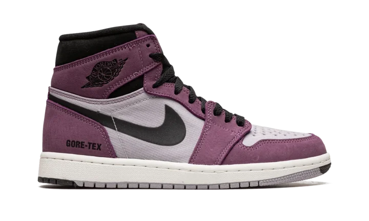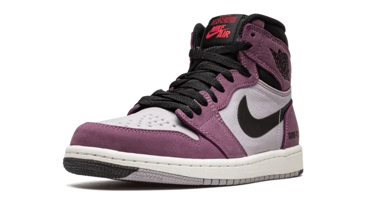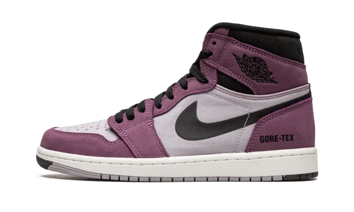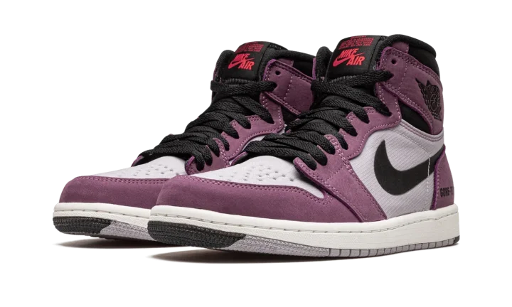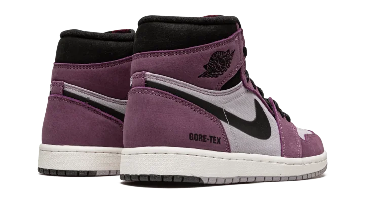 The Air Jordan 1 Element Gore-Tex "Berry" is a colorful look for the modified Jordan 1 with a weatherproof design. The Jordan 1 Element gives the retro basketball shoe a rugged makeover designed to withstand the elements, including harsh weather conditions. A Gore-Tex membrane lines the upper, with overlays on the toe cap, forefoot, and eyelets appearing in Berry-colored leather. The look is contrasted by a lighter purple nylon on the perforated toe and mid-panel. A black reflective Swoosh is found on the sides and a black "Wings" logo appears on the collar. "Gore-Tex" branding is printed on the lateral side of the heel. Release date: March 28, 2022