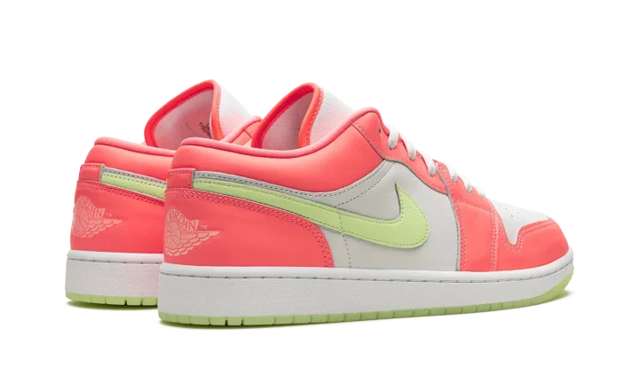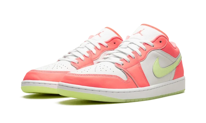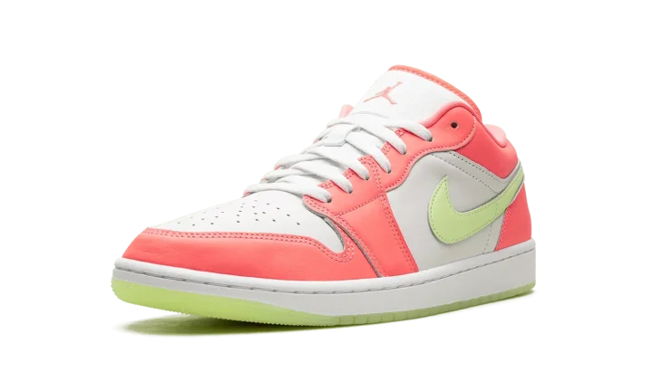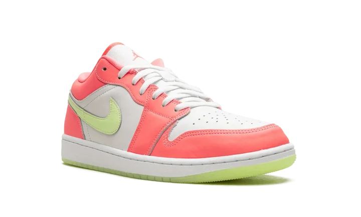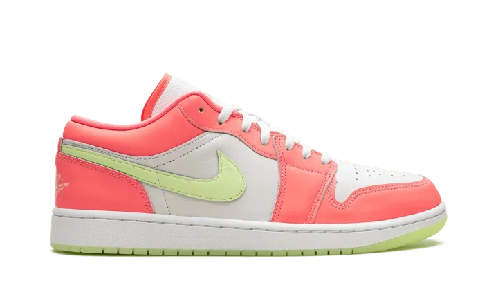 The Air Jordan 1 Low SE "Lava Glow" is a colorway of the retro basketball shoe with a vibrant appearance. The "Lava Glow" features an eye-catching color block that includes white leather on the shoe's base and Lava Glow leather on its overlay panels. A Barely Volt leather Swoosh is found on each side of the shoe. "Wings" branding is printed on the heel and a Lava Glow Jumpman is embroidered on the tongue. Underfoot, the white rubber midsole and Barely Volt rubber outsole complete the bold colorway. Release date: July 7, 2023