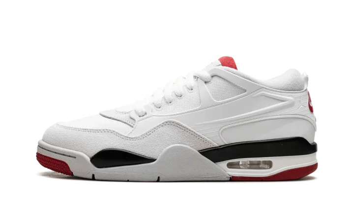 Prepare for the next evolution of a classic with the Jordan 4 RM 'White/Fire Red' sneaker. This "Reimagined" edition modernizes the iconic AJ4 for on-the-go life, centering on comfort and durability. It features a clean white upper with vibrant Fire Red accents and the nostalgic Nike Air logo on the heel. The layered design and flexible cage structure maintain the heritage look you love, while Max Air cushioning provides plush support for your every stride. A must-have for any Jordan enthusiast!