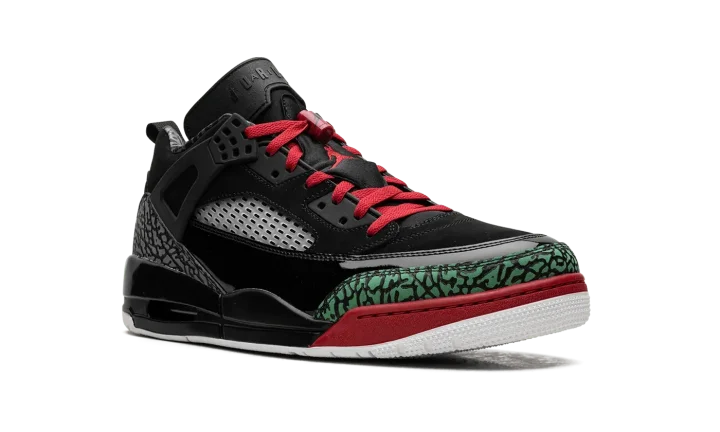 Step into a celebration of heritage design with the Jordan Spizike Low OG "Black / Varsity Red". This celebrated hybrid silhouette fuses signature elements from multiple Jordan models, like the elephant print and lace wings. Featuring a classic black and red colorway, it delivers comfortable Air cushioning and a bold, sophisticated look, perfect for making a powerful statement.