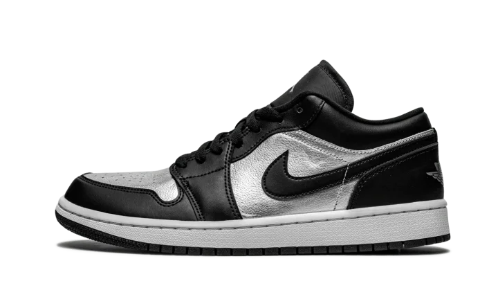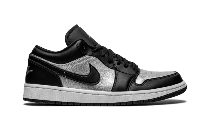 The Women's Air Jordan 1 Low SE "Silver Toe" is the women's sizing of Michael Jordan's first signature shoe in a flashy colorway inspired by space exploration. In February 2021, Jordan Brand released the popular "Silver Toe" colorway on the Jordan 1 High with the alternate Jordan 1 Low following soon after. Both versions of the colorway draw comparisons to Kawhi Leonard's "Think 16" Jordan 1 from 2018 and the original "Shadow" makeup from 1985. Here, crinkled silver leather can be found on the perforated toe and on the mid-panel. Black leather overlays on the forefoot, eyelets, collar, and heel balance out the look. A black leather Swoosh appears on either side of the shoe and a grey "Wings' graphic is printed on the heel. The same neutral hue marks the embroidered Jumpman logo stitched onto the black nylon tongue.