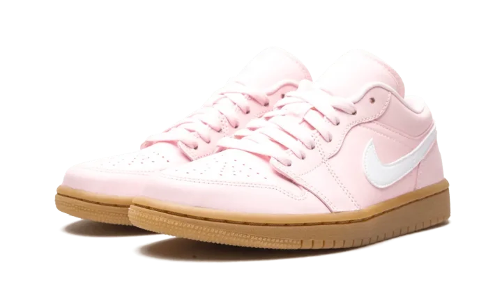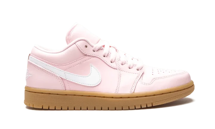 The Women's Air Jordan 1 Low "Arctic Pink/Gum" is yet another clean and casual colorway of Michael Jordan's first signature shoe for women. Featuring a mostly pink monochromatic look, the "Arctic Pink/Gum" makeup of the low-top Jordan 1 is most definitely a head-turner. As mentioned, the leather upper is dressed almost exclusively in Arctic Pink, save for the white Swoosh on both sides and the white "Wings" embroidery on the heel. Both the pink nylon tongue and pink shoe laces continue the shoe's predominantly pink theme. Underfoot, a classic gum rubber sole completes the look.