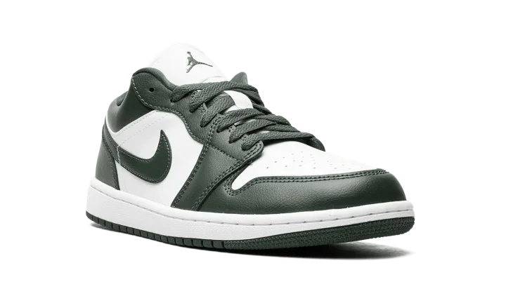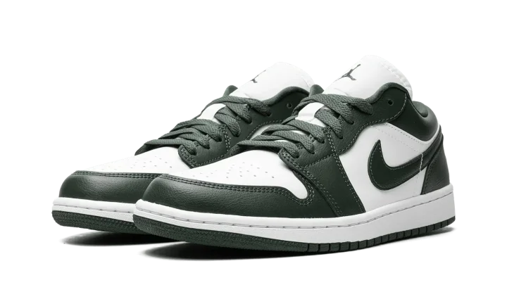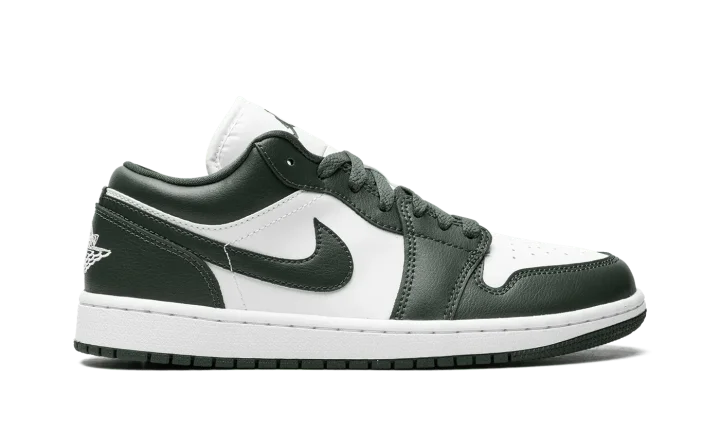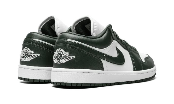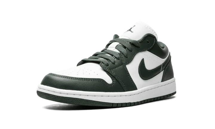 The Women's Air Jordan 1 Low "Galactic Jade" is a women's-exclusive colorway of the retro basketball shoe with an easy-to-style design. The upper is complete with a white leather base that's contrasted with what Jordan Brand calls Galactic Jade leather overlays. The dark green hue also appears on the leather Swoosh. A "Wings" logo can be found on the heel and a green Jumpman is seen on the tongue. Underfoot, a white midsole and green outsole complete the look. Release date: October 18, 2023