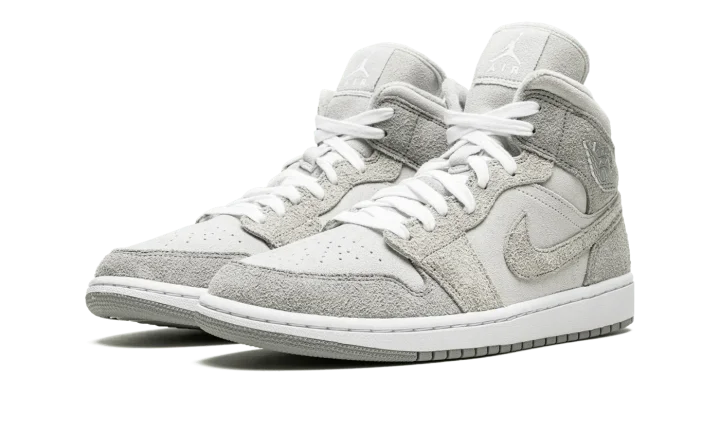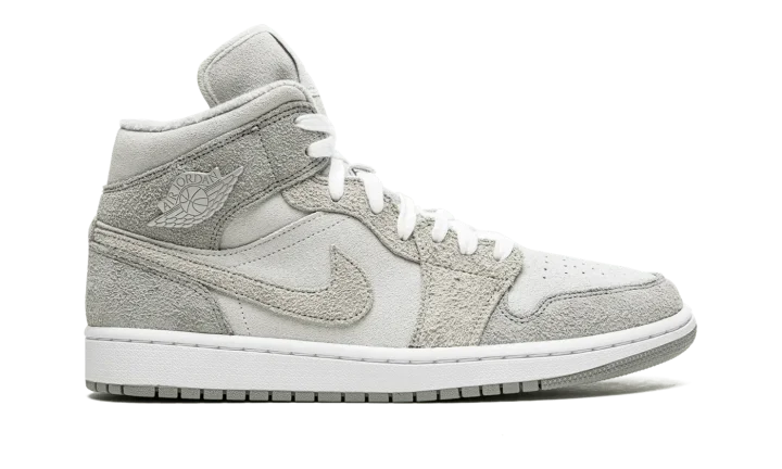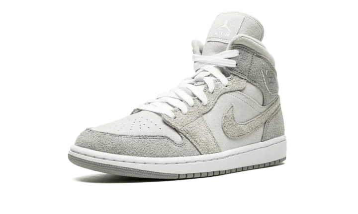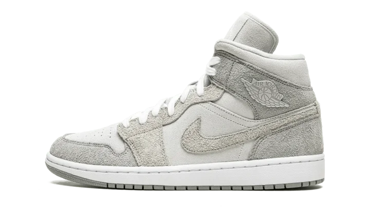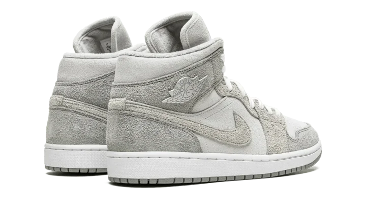 The Women's Air Jordan 1 Mid SE "Particle Grey Suede" is a women's-exclusive colorway of the popular lifestyle shoe in a colorway that features a unique combination of materials. The "Particle Grey Suede" Jordan 1 Mid features hairy suede panels and Swoosh branding designed in Particle Grey and College Grey. The overlays are contrasted by a light grey suede base. A metal "Wings" logo is found on the collar and grey Jumpman and "Air" branding appear on the tongue tag. Ideal for cooler temperatures, the shoe features a plush fleece-lined interior that retains warmth and provides a comfortable fit to the wearer.