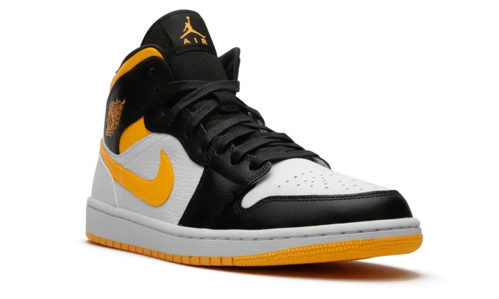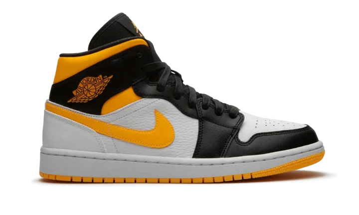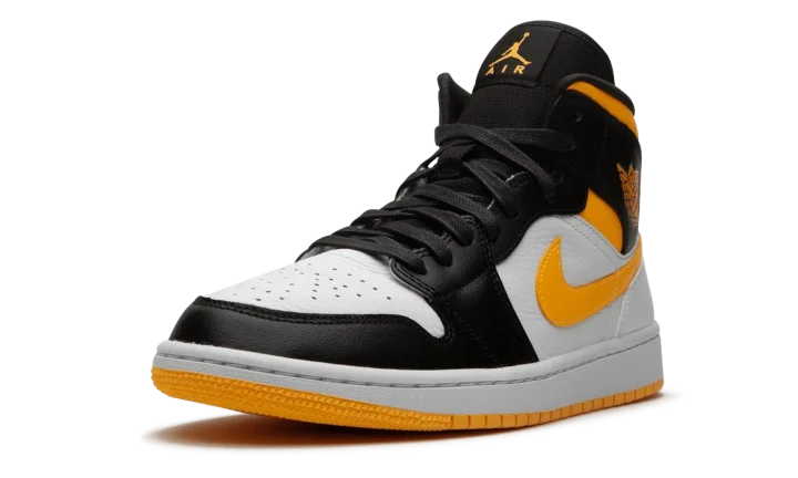 The Women's Air Jordan 1 Mid "Laser Orange/Black" displays a fresh new look that fits within the confines of Jordan Brand's lifestyle-oriented lineup. This women's sizing of the Jordan 1 Mid features an attention-seeking color scheme that leans heavily on its Laser Orange collar, leather Swooshes, and "Wings" logos. White tumbled leather can be found on the mid-panel, perforated toe, and heel. Glossy black laces and black leather overlays on the forefoot, eyelets, and collar give this colorway a luxurious appeal. The black mesh tongue displays orange Jumpman accenting.