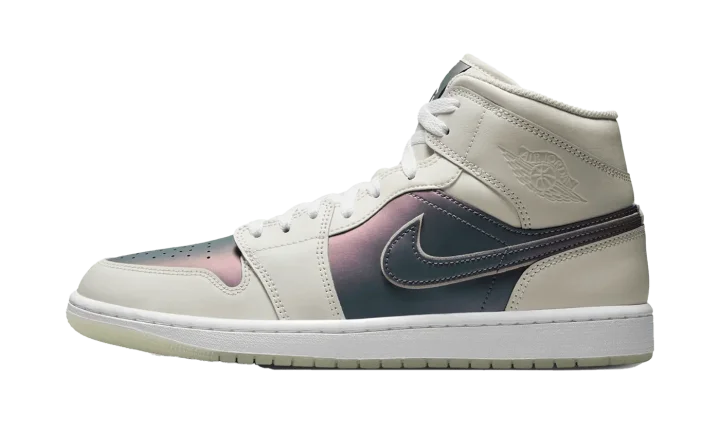 Step into a shimmering, sophisticated aesthetic with the Air Jordan 1 Mid SE Wmns "Phantom / Iridescent". This celebrated women's sneaker features a neutral Phantom base complemented by striking, color-shifting Iridescent accents. Enjoy superior Air cushioning and a design that's perfect for making a stylish statement with a subtle, futuristic gleam.