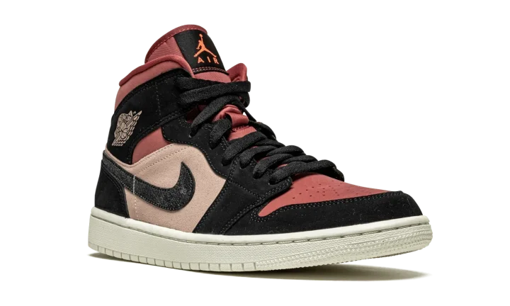 The Women's Air Jordan 1 Mid "Canyon Rust" is the women's sizing of Michael Jordan's first signature shoe in a street-ready colorway. The Jordan 1 Mid has become a sought after shoe in the Jordan line for its easy-to-wear style and considerable comfort. On the "Canyon Rust," black synthetic nubuck panels allow for the Particle Beige suede mid-panel and dark pink to garner attention. The black speckled Swoosh adds a unique look to the design. Jordan Brand places a "Wings" logo on the collar and adds an orange tinted Jumpman insignia to the black nylon patch stitched onto the tongue. A Sail rubber sole completes the look.