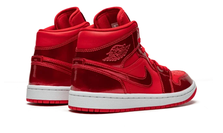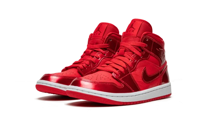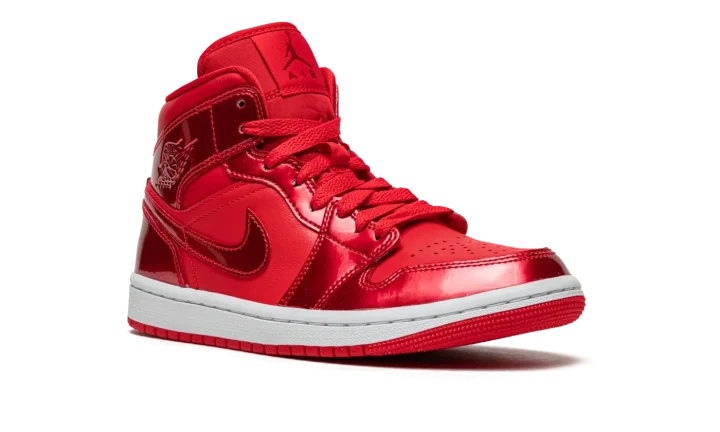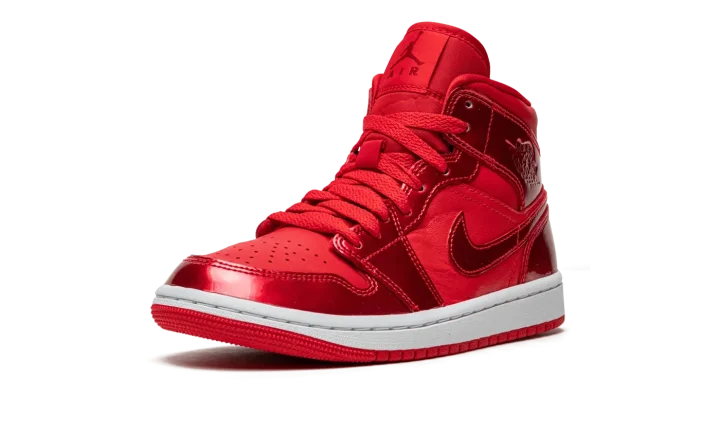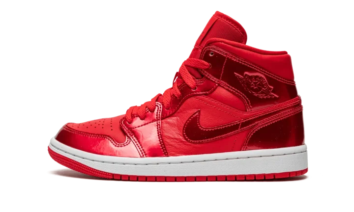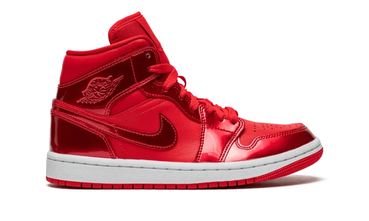 The Women's Air Jordan 1 Mid "Pomegranate" is a women's-exclusive colorway of the popular lifestyle shoe that turns heads with its all-red-everything aesthetic. The "Pomegranate" channels a similar energy to that of the all-red Air Jordan 1 High OG's "Legends of Summer" colorway, one of the most desirable Jordan 1 releases in history. University Red leather is found on the perforated toe, mid-panel, and collar. The overlays, "Wings" logo on the collar, and Swoosh on the sides are designed in Pomegranate-colored synthetic leather with a metallic finish. The monochromatic red design is broken up by a white rubber midsole. Underfoot, a University Red rubber outsole completes the look.