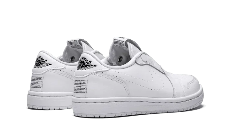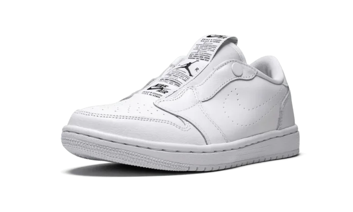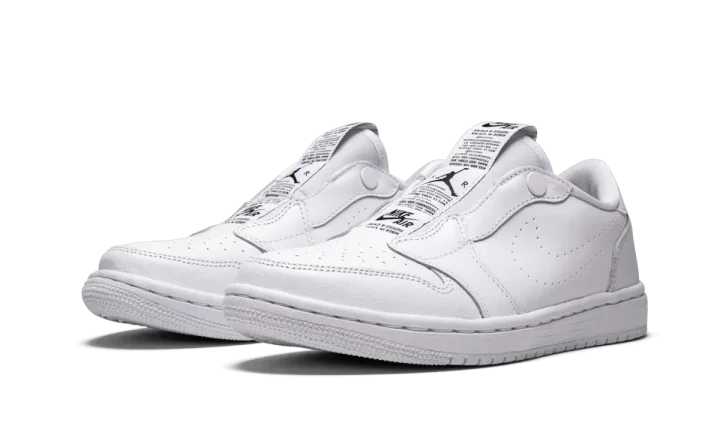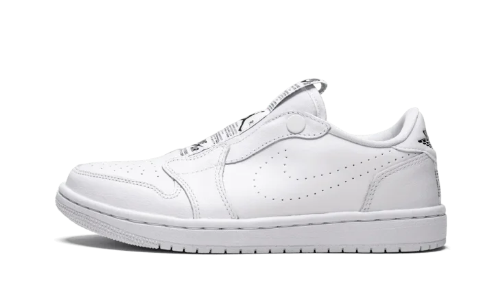 The women's Air Jordan 1 Low Slip is a unique laceless spin on the low-top Jordan 1. The popular silhouette comes with a perforated midfoot Swoosh and a snap on each side of the ankle collar. The tongue tag is flipped inside-out and rides the length of the shoe's throat and also appears on the heel. The slip-on style does away with the laces, and the Air Jordan 1 Low Slip is grounded with a standard white sole.