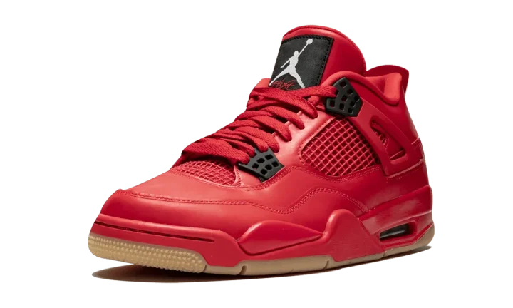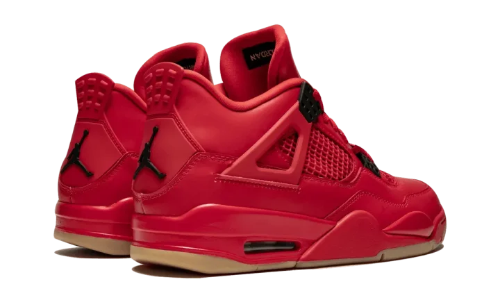 The Women's Air Jordan 4 "Singles Day" is a special edition of the fourth Air Jordan silhouette that was released in celebration of China's Singles Day holiday. This women's exclusive Jordan 4 features an all-red upper with black accents and a gum rubber outsole. But the Singles Day colorway is not as simple as it first appears. The red hue is actually a layer of paint that can be rubbed off to reveal an intricate floral print on a white leather base underneath. The Women's Air Jordan 4 "Singles Day" released on November 10, 2018, one day before the holiday on 11/11.
