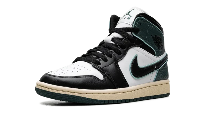 Dive into heritage with the Jordan 1 Mid SE WMNS "Oxidized Green," a refreshing take on an icon. This mid-top silhouette for women features a premium leather upper with striking Oxidized Green overlays and classic white paneling, giving it a sophisticated, retro-inspired look. An encapsulated Nike Air unit and foam midsole provide lightweight, all-day comfort, while the durable rubber outsole ensures essential traction. Perfect for sneaker enthusiasts, this special edition seamlessly blends iconic style with modern wearability.