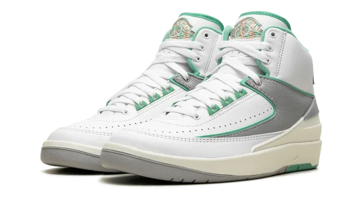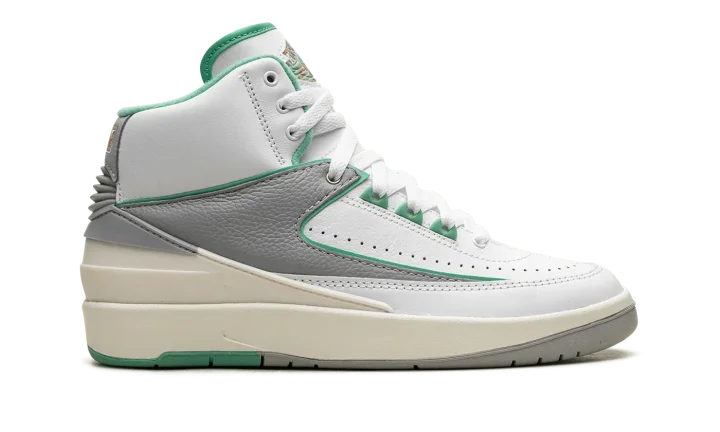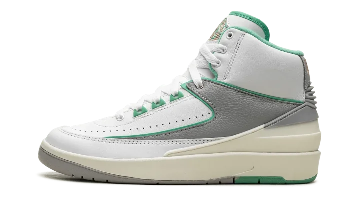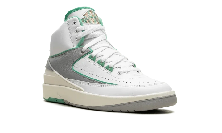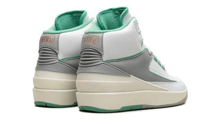 The Women's Air Jordan 2 "Crystal Mint" is a women's-exclusive colorway of the retro basketball shoe that is loosely inspired by the Statue of Liberty. While the colorway doesn't feature any branding inspired by "Lady Liberty," its Crystal Mint and Wolf Grey accents are nonetheless reminiscent of the hues of the iconic statue. The shoe features a white leather upper with a Wolf Grey leather overlay on the mid-panel that could very well be inspired by the stone base of the statue. The Metallic Red Bronze "Wings" logo on the tongue and "Nike" logo on the heel have a rust-like effect that mimics the weathered look of the Statue of Liberty. Release date: August 1, 2023