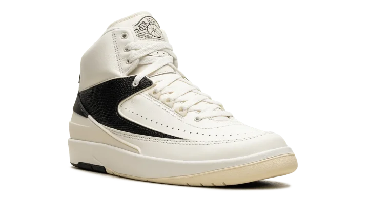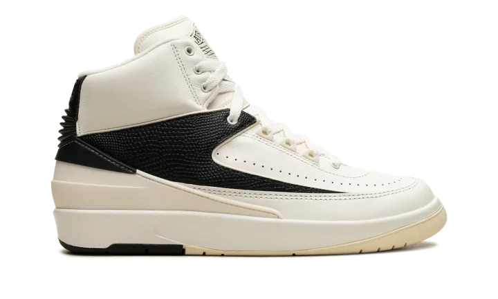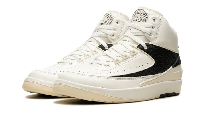 The Women's Air Jordan 2 "Sail" is a women's-exclusive colorway of Michael Jordan's second signature shoe from Jordan Brand's Spring 2024 collection. The Jordan 2 "Sail" has a versatile color scheme, with a Sail leather construction contrasted with a black pebbled leather overlay on the midfoot. More black accenting can be found on the heel counter and on the heel of the rubber outsole. As for the rest of the shoe, a classic "Wings" logo appears on the tongue, and a removable "Wings" hang tag is attached to laces. A Coconut Milk-colored midsole completes the look. Release date: January 10, 2024