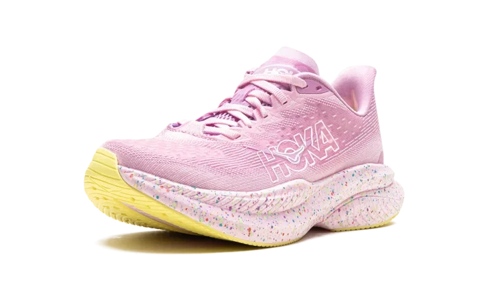 For a fast and fun run, consider the Hoka Mach 6 "Pink / Twilight / Lemonade." This shoe delivers a lightweight and responsive feel, ideal for tempo runs and races. The eye-catching color combination adds a burst of energy to your stride.