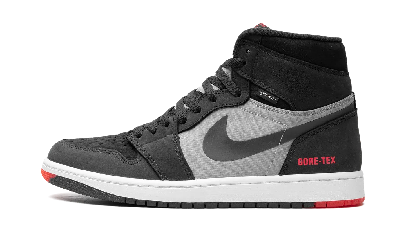 The Air Jordan 1 Element "Bred" is a colorway of the weatherproof version of Michael Jordan's first signature shoe. The Jordan 1 Element first appeared as part of Jordan Brand's Holiday 2021 collection and gives the venerable basketball and lifestyle shoe a rugged design that's meant to withstand the elements, including harsh weather conditions. A Gore-Tex membrane insulates the upper, with overlays on the toe cap, forefoot, and eyelets appearing in black nubuck. A grey ripstop-like material appears on the mid-panel and a black textile is found on the perforated toe. A black Swoosh logo is located on the sides. A tonal "Wings" logo resides on the collar and red "Gore-Tex" branding is printed on the lateral side of the heel. Release date: December 12, 2023