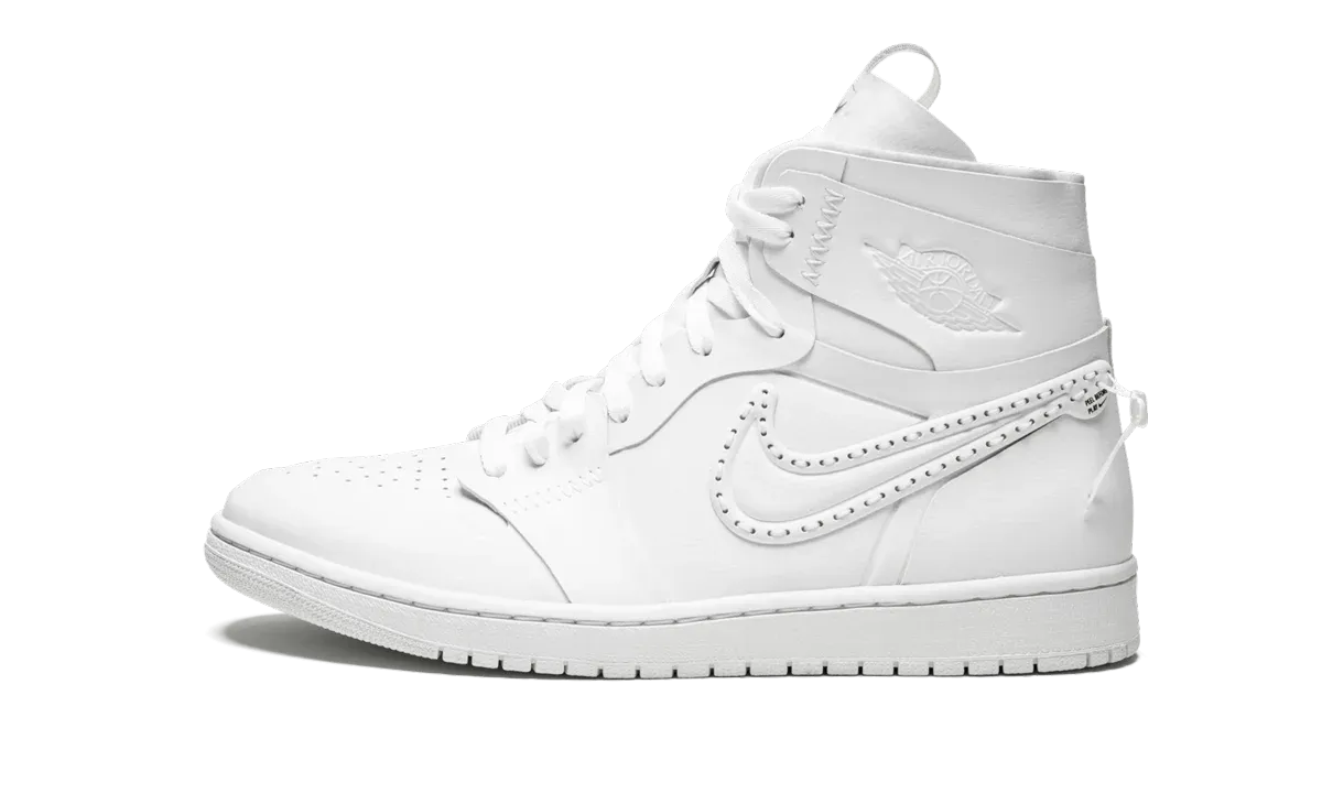 The Air Jordan 1 "Noise Canceling" is a special edition of the iconic Jordan 1 High that released within Nike's "Noise Canceling Pack" in 2019. With the concept of stripping away all the "noise," the Jordan 1 has a deconstructed aesthetic in all-white leather. Special details include seamless paneling that is contrasted with exaggerated stitching in select spots. A 3D treatment is applied to the Swooshes, which have an elongated loose end to the stitching. Another distinct feature is the clear tongue tabs. The all-white colorway is meant to encourage color customization, but of course, you can also leave them in their pristine white condition. The Air Jordan 1 "Noise Canceling" released in March 2019.