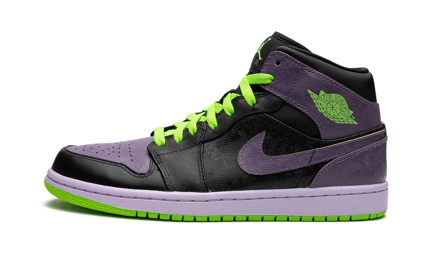 Due to its similarities in color to the famous foe of Batman, this Air Jordan 1 High in black, green, and purple quickly picked up the "Joker" nickname.