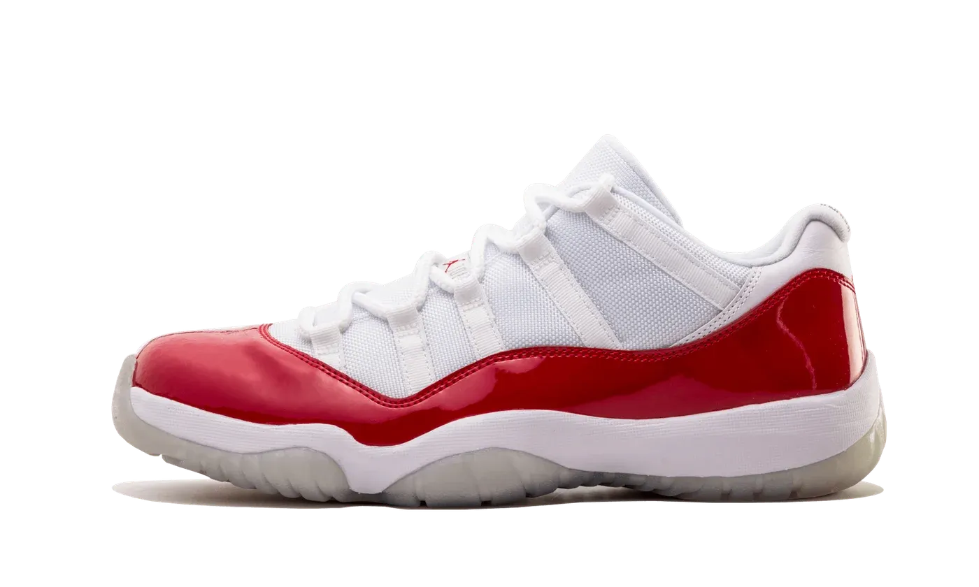 The Air Jordan 11 Low "Cherry" is the 2016 re-release of the colorway that debuted on the retro basketball shoe in 2001. The original Jordan 11 Low "Cherry" was released as part of the "Retro+" collection of lifestyle-inspired Air Jordan colorways before it returned in 2016. The OG "Cherry" was one of the first non-original Air Jordan 11 colorways and Air Jordan 11 Low releases. True to the original, the 2016 edition of the "Cherry" features a white mesh upper with tonal nylon overlays. A Varsity Red patent leather mudguard contrasts the neutral appearance of the upper. Small red Jumpman branding appears on the white mesh tongue. The Air Jordan 11 Low "Cherry" inspired the Air Jordan 11 "Cherry" from 2022, a holiday release by Jordan Brand. Release date: June 4, 2016