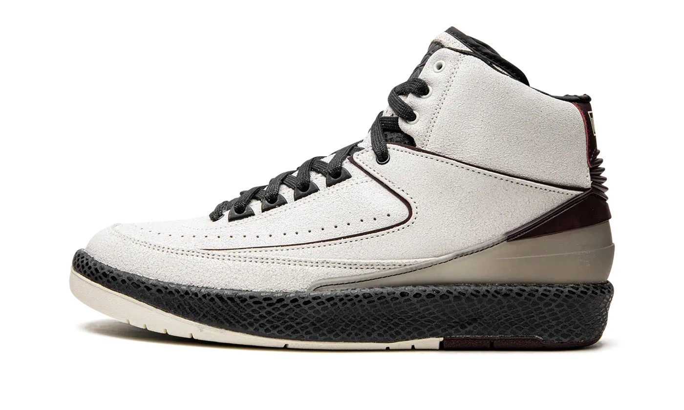 The A Ma Maniére x Air Jordan 2 is a collaboration between the upscale clothing and sneaker boutique and Jordan Brand on Michael Jordan's second signature shoe. The Jordan 2 enjoyed newfound appreciation when Off-White collaborated on the retro basketball sneaker in 2021, and again when Union co-created several colorways in early 2022. Excitement for the old school shoe boiled over when A Ma Maniére released its "Airness" version in May 2022. Details include a premium textured Sail leather base with burgundy accents on the heel. A black faux snakeskin textured midsole adds to the shoe's opulent look. "Maniére" branding replaces the original "Air" detailing found on the heel. A burgundy "Wings" logo is found on the tongue. Release date: May 13, 2022