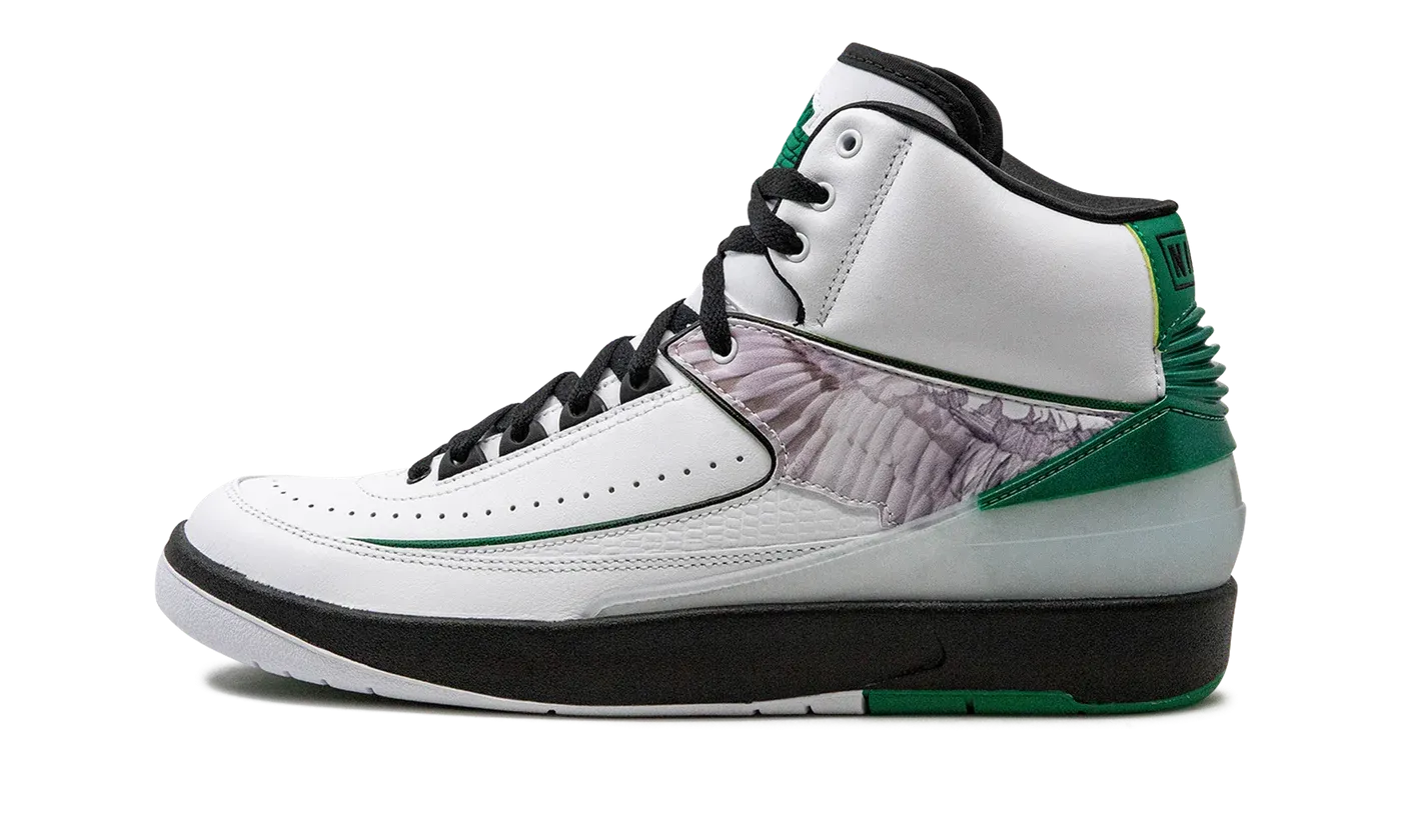 The Air Jordan 2 "Wings" is a special colorway of the second Air Jordan dedicated to Jordan's Wings Scholarship Program. The Jordan Wings Program helps students realize their potential without the stress of college payments or loans. This version of the Jordan 2 celebrates the graduating class of Jordan Wings Program in 2023. The upper is constructed of white leather with special side panels that resemble wings. Green accenting along the panels, on the heel, and on the "Wings" logo contrast the shoe's white leather base. Release date: June 10, 2023