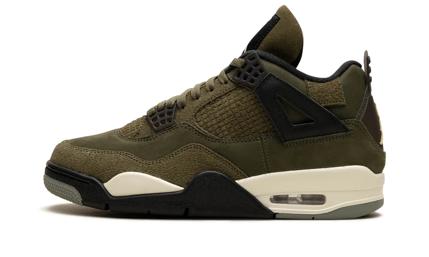 The Air Jordan 4 Craft "Medium Olive" is a premium version of Michael Jordan's fourth signature shoe designed in a unique combination of materials. From Nike and Jordan Brand's "Craft" collection, the Jordan 4 Craft in "Medium Olive" features an olive-colored nubuck and suede construction. The Jordan 4's usual plastic netting on the sides and tongue is replaced with textured suede for an upscale appearance. Black detailing can be found on the "wings," on the molded eyelets, on the Jumpman-branded tongue patch, and on the Jumpman-branded heel counter. Underfoot, a black and white midsole with a visible Air unit in the heel completes the look. Release date: November 18, 2023
