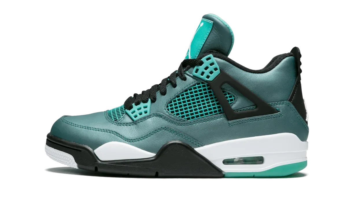 One of the first "Remastered" Air Jordan retro releases, this all-new colorway of the famous Air Jordan 4 from 2015 features a dark teal leather upper with black accents and highlights in bright teal. A release for Jordan Brand's 30th anniversary, the shoes come with special "30" Jumpman logos on each insole.