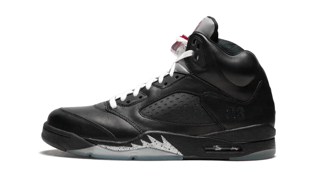 Very limited and constructed with impeccable quality, this is the Air Jordan 5 from the BIN 23 series of premium Air Jordans. Similar to the original "Black/Metallic" colorway, the shoe features a soft black leather upper metallic silver accents and white laces.