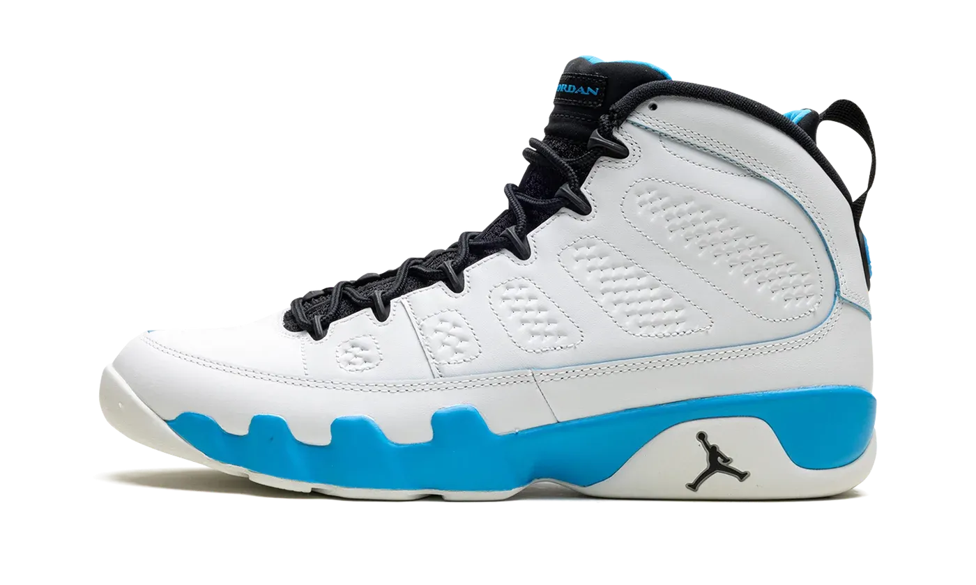 The Air Jordan 9 OG "Powder Blue" is an original colorway of Michael Jordan's ninth signature shoe that debuted in 1993 before it was brought back in 2010 and here, in 2024. The modern version of the "Powder Blue" Jordan 9 is crafted in the spirit of the original style from '93. Moreover, the "Powder Blue" theme is inspired by Jordan's alma mater, the University of North Carolina. The shoe is complete with a white leather construction with Powder Blue accenting on the midsole. The inner lining is also featured in Powder Blue, as is the "Jordan" branding on the tongue, and the "globe" emblem on the heel. A small Jumpman on the side of the heel of the midsole completes the look of this classic sneaker.
